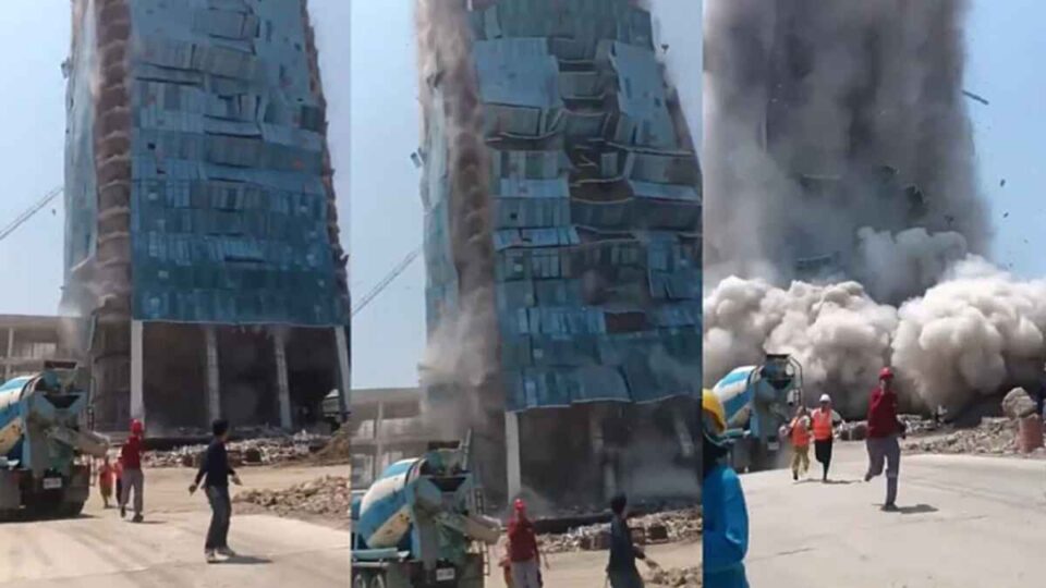 Radnici na gradilištima su u panici bježali nakon što su temelji jedne od zgrada počeli popuštati, a trenutak potpunog urušavanja jedne od konstrukcija snimljen je i podijeljen na internetu.