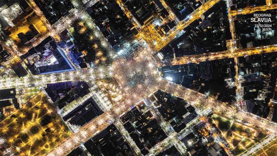Na Slaviji i u prilaznim centralnim beogradskim ulicama okupilo se juče više ljudi nego što se nalazilo oko Skupštine u najkritičnijim momentima 5. oktobra 2000, kažu iz Arhiva.