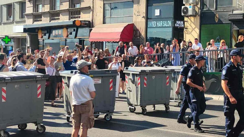 „Dodjite sa nama“. Građani su oko 16 sati kontejnerima i izlaskom na kolovoz blokirali saobraćaj na Zelenom vencu, odnosno prilaz Terazijskom tunelu, u kojem su dva vozila Saobraćajne policije.
