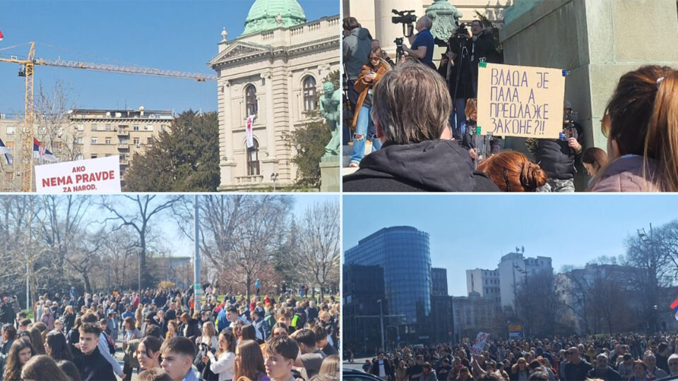 Par hiljada građana i studenata blokiralo je saobraćaj ispred Skupštine Srbije, gde se održava sednica na kojoj se dogodio niz incidenata.