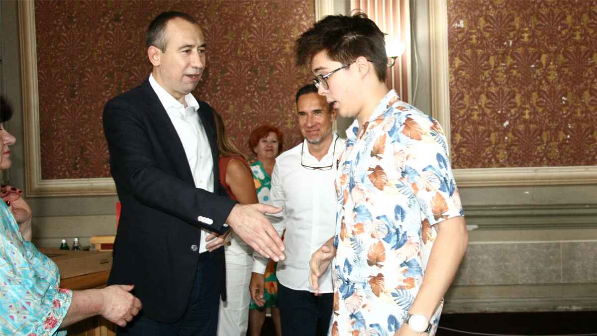 Đak generacije u Bečeju je danas Mihajlo Gucunja odbio da se rukuje sa predsednikom opštine Vukom Radojevićem (SNS)