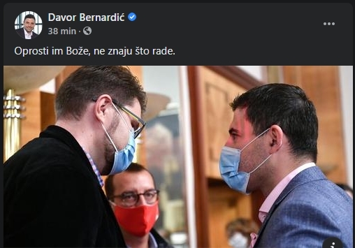 “Oprosti im Bože, ne znaju što rade”, napisao je Bernardić.