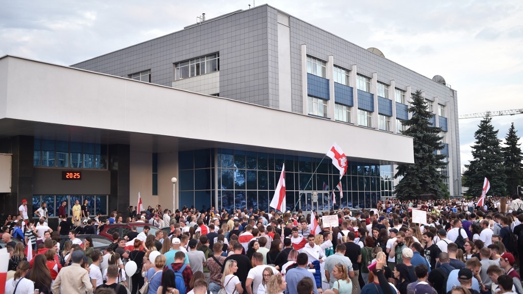 Beloruski demonstranti okupili su se jutros ispred više fabrika i ispred sedišta javne televizije u Minsku, na poziv opozicije koja je najavila generalni štrajk zbog reizbora predsednika Aleksandra Lukašenka.