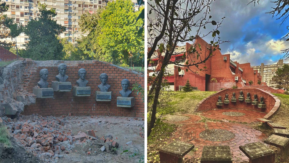 Ona je dodala da nije moguće u bloku gde je sve transparentno i gde je škola zaštićena kao spomenik kulture srušiti biste, „to bi bio svojevrsni vandalizam“.