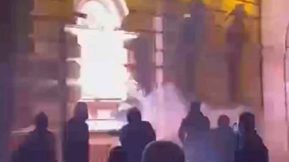 Posle višesatnog haosa ispred Gradske kuće,demonstranti su ubacile baklju i u prizemlju gde se nalaze policijske snage.