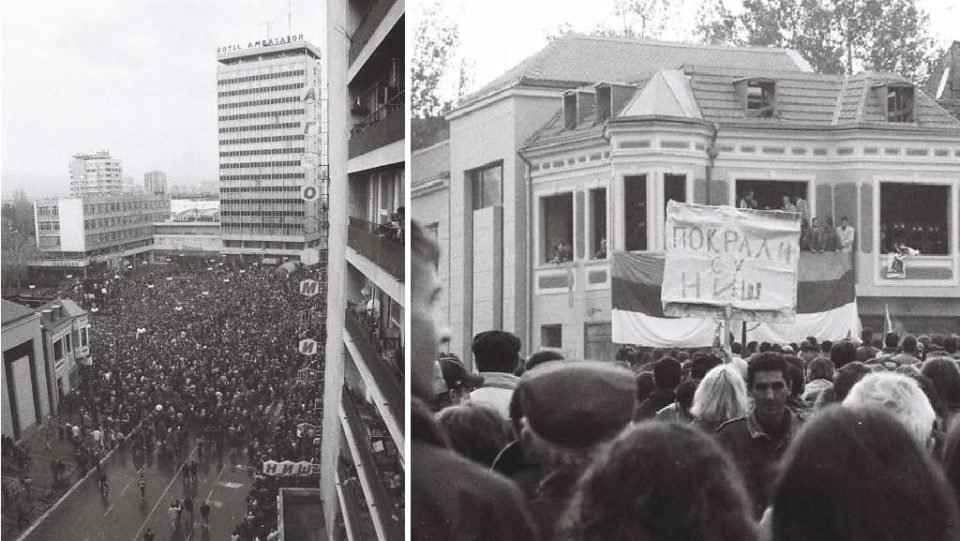 Na današnji dan 1996. godine u Nišu su započeli prvi masovni protesti protiv režima Slobodana Miloševića. Dan kasnije protesti su se proširili i na ostatak Srbije. Direktan povod bila je krađa glasova na lokalnim izborima održanim dan ranije.