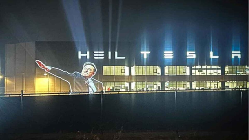 Fotografija Elona Muska s kontroverznim pozdravom projektovana je na Teslinu Gigafabriku u Berlinu, uz riječi “Heil Tesla”. Dvije lijevo orijentisane aktivističke grupe, Led By Donkeys iz Velike Britanije i njemački Centar za političku ljepotu, preuzele su odgovornost za projekciju na X-u, ranije poznatom kao Twitter.