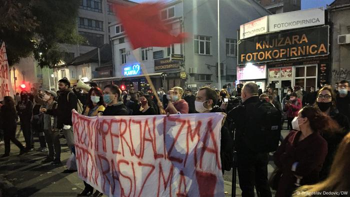 Sudeći po parolama koje stotinjak desničara dobacuje pripadnicima „Antife” njihovi omiljeni neprijatelji nisu migranti, već srpski ljevičari: „Komunisti smrt vam doći mora, sudiće vam omladina Zbora”. „Bando crvena”. „Ustaše, ustaše”. Mladi radikalni ljevičari im ne ostaju dužni: „Ustaše i četnici, zajedno ste bježali!”, „Idemo na Adu, da tražimo Dražu”, i nešto uopćenije „Smrt fašizmu i kapitalizmu”.