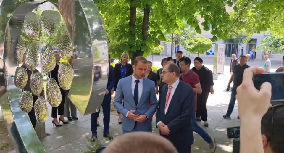 Stanivuković i Šmit u šetnji Banjalukom nakon sastanka. Duže zadržavanje kod spomenika Život, posvećenog smrti 12 banjalučkih beba. @N1infoSA pic.twitter.com/p8nrrdcExf