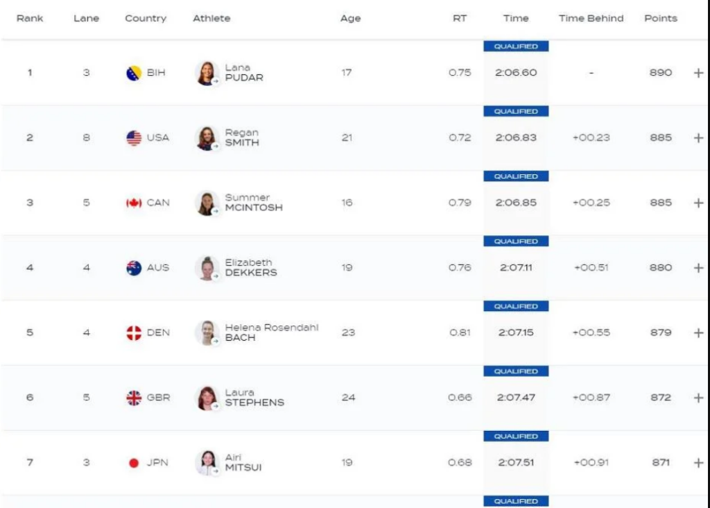 Lana je čak za 23 stotinke bila brža od Regan Smith, te 25 stotinki u odnosu na fenomenalnu Kanađanku i prvu favoritkinju za zlato Summer McIntosh.