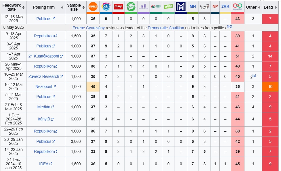 Podrška među mlađima od 40 godina je još jača, sa 58% podrške Tiszi, dok Fidesz ostaje zaglavljen sa starijim biračima. Prije tri mjeseca, Tisza je imala prednost od samo devet bodova. Međutim u anketama ne piše koliko glasova će se ukrasti s toga treba biti oprezan u prognozama.