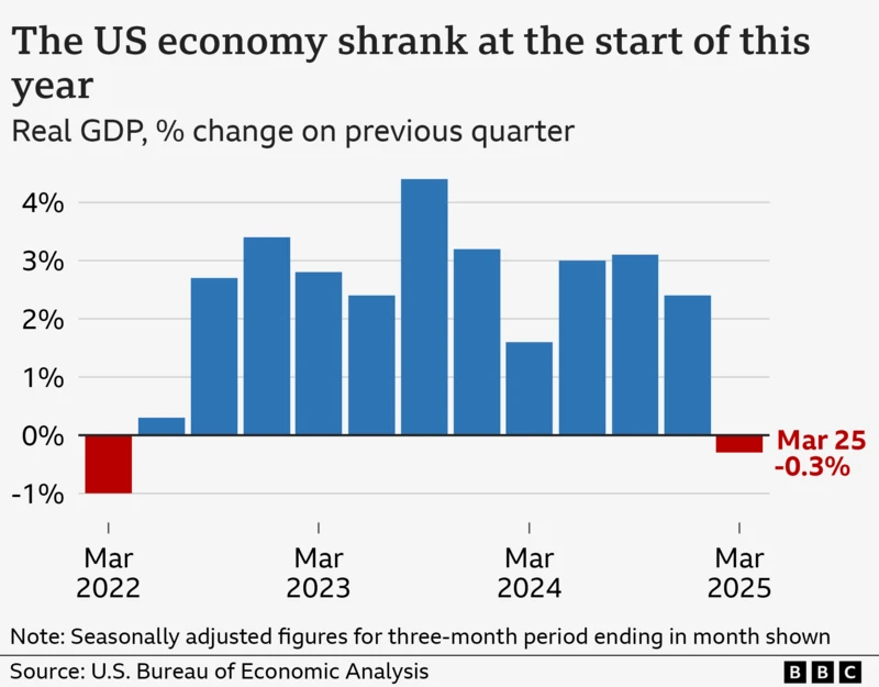 Ekonomija je pala u prvom tromjesečju, opterećeno poplavom robe koju su uvozila poduzeća nastojeći izbjeći veće troškove, što naglašava remetilačku prirodu Trumpove često haotične carinske politike.