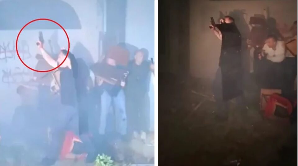 Kamere su zabilježile i muškarca za kojeg se tvrdi da je iz zgrade SNS-a izašao držeći pištolj. To je izazvalo paniku među prisutnima, a u prijenosu uživo televizije N1 Srbija moglo se čuti kako neko iz mase upozorava da je oružje izvučeno.