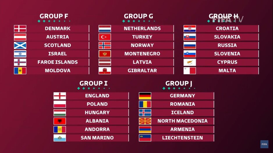 18:47 – Žrijeb je završen. Kvalifikacije počinju 24. i 25. marta, a posljednje 10. kolo igra se od 14. do 16. novembra naredne godine.