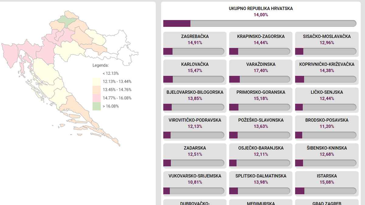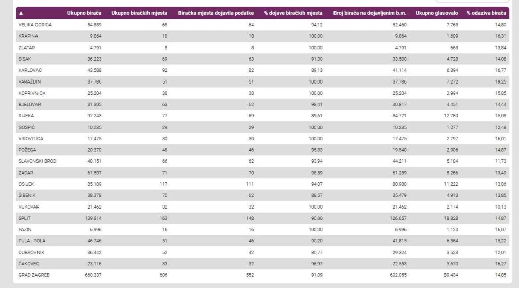 Evo koliko je ljudi glasalo po gradovima, sjedištima županija. Najveća izlaznost je u Varaždinu.