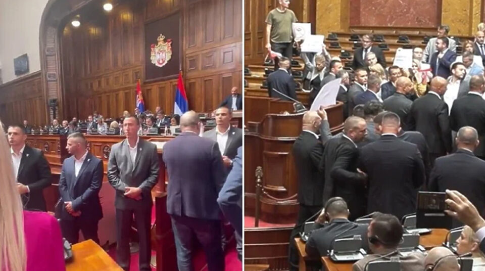 Na današnjoj sjednici Skupštine Srbije zastupnike vladajuće većine, kao i ministra u vladi, čuvali su pripadnici Jedinice za osiguranje određenih osoba i objekata (JZO), prenosi Nova.rs.