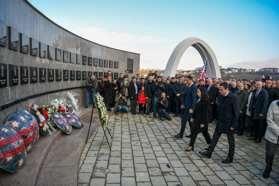 Vjosa Osmani u pratnji premijera Albina Kurtija i predsednika Skupštine Gljauka Konjufce prisustvovala je danas obeležavanja 24. godišnjice masakra nad Albanicima u Račku iz januara 1999.