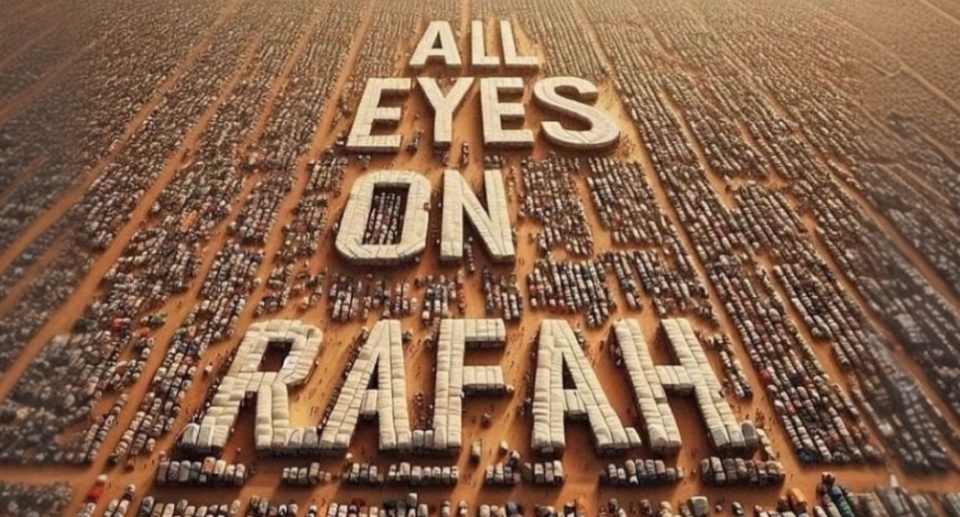 Ovu ste sliku vjerojatno vidjeli: uredne linije šatora koji se protežu u daljinu na prašnjavom tlu, s bijelom strukturom u sredini na kojoj piše “Sve oči uprte u Rafah.”