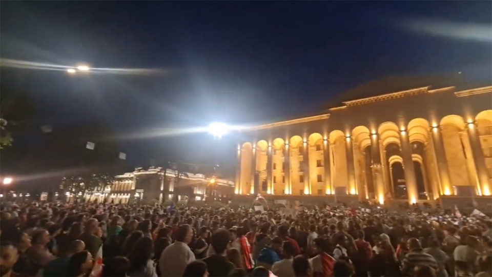A student march is moving towards Georgia’s parliament, to join tonight’s protest against the foreign agent law.