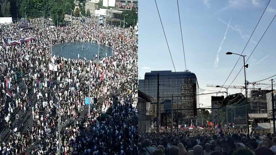 Trg Slavija je blokiran sat vremena prije zvaničnog početka protesta, a istovremeno u tzv. “Ćacilendu”, ispred Skupštine Srbije, se održava “književno veče”.