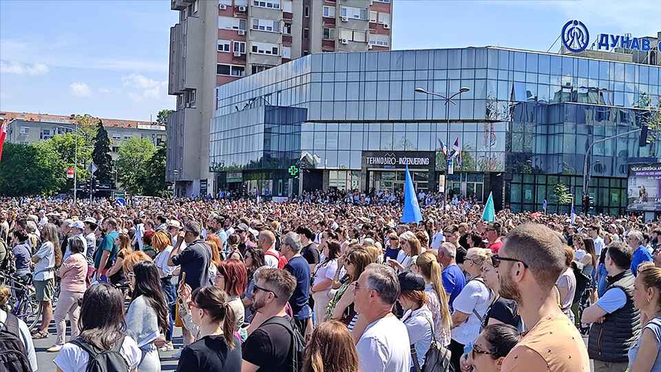 Tišinom ispred Železničke stanice u Novom Sadu, više hiljada građana i studenata u blokadi Univerziteta u Novom Sadu 1. maja odaje počast žrtvama šest meseci nakon nesreće.