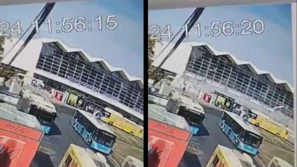 Snimak izgleda stravično, na njemu se vidi momenat u kom se nadstrešnica bukvalno odlama od ostatka zgrade i gomila betona pada na ljude koji se nalaze ispod nje, dok građani koji čekaju na autobuskoj stanici i oni koji prolaze stazom bliže kolovozu za dlaku izbegavaju teške povrede ili smrt.