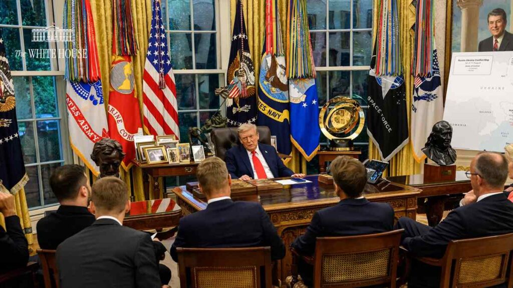 Lideri, uključujući predsjednicu Evropske komisije Ursulu von der Leyen, generalnog sekretara NATO-a Marka Ruttea, francuskog Macrona, britanskog Keira Starmera i italijansku Giorgiju Meloni, doputovali su u ponedjeljak u Washington kako bi podržali ukrajinskog predsjednika Volodimira Zelenskog na sastanku s Trumpom.