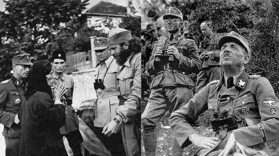 Pored njega prisutni su još August Šmidhuber, komandant 2. puka 7. SS divizije (prvi levo), Todor Perović, advokat iz Trebinja i predstavnik četničke komande istočne Bosne i Hercegovine (drugi levo) i nepoznati oficir Vermahta. Slika je nastala tokom nemačke operacije “Gama” protiv partizana i njihovih pristalica u istočnoj Hercegovini.