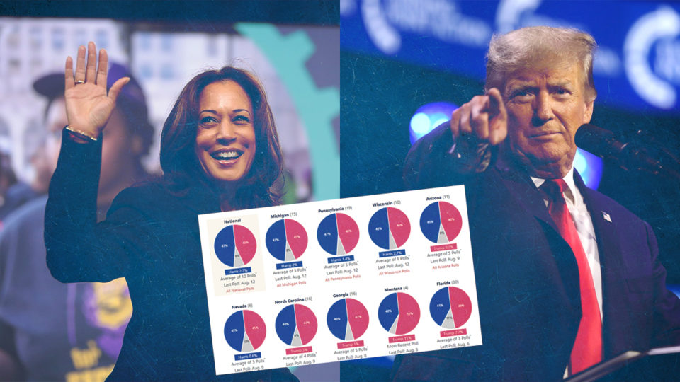 Prema prosjeku posljednjih anketa u SAD-u, Kamala Harris vodi ispred Donalda Trumpa u četiri od šest ključnih država nakon povlačenja Joea Bidena iz predsjedničke utrke, što je pozitivno utjecalo na njenu kampanju.
