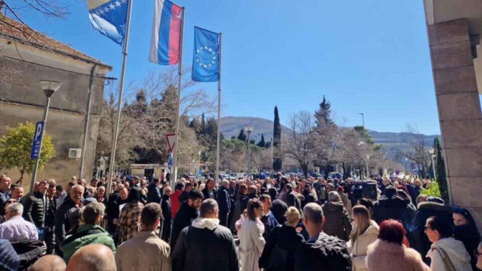 Građani Trebinja okupili su se danas u pet do 12 ispred Palate pravde kako bi izrazili podršku narodnom poslaniku Nebojši Vukanoviću, kome je 14. marta ispred porodične kuće zapaljen automobil.