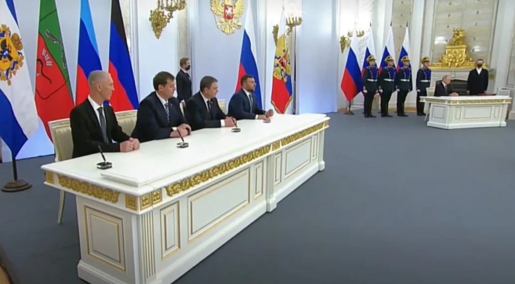 Predsjednik Rusije Vladimir Putin održao je danas u Kremlju ceremoniju na kojoj su prisustvovali brojni ruski zvaničnici, a na kojoj je i zvanično potpisana odluka o aneksiji četiri ukrajinske regije u sastav Ruske Federacije.