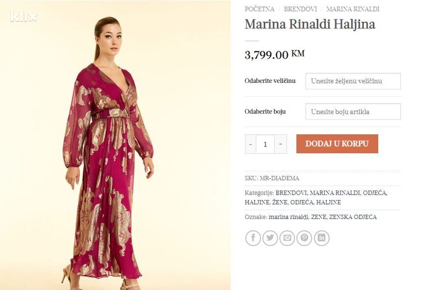 Haljina se može kupiti u jednoj prodavnici u Sarajevu, a trenutno košta 3.799 KM.