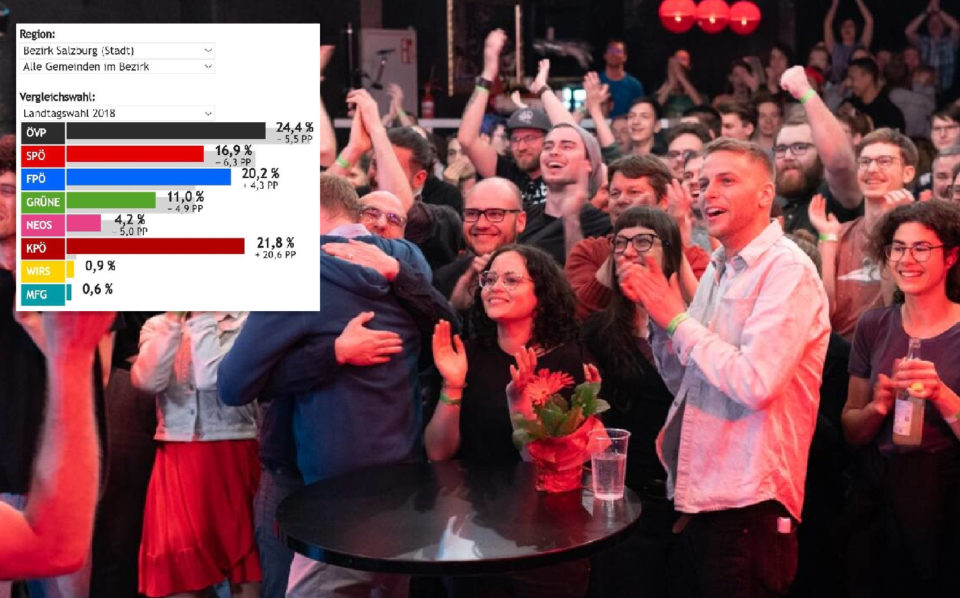 Ipak jos veće iznenađenje pored 5 mandata osvojenih na nivou pokrajine Salzburg, jesu glasovi u samom glavnom gradu. Tamo su komunisti (KPO) dobili čak 21,8 odsto glasova i tako postali druga stranka po snazi u Salzburgu, četvrtom po veličini gradu u Austriji.