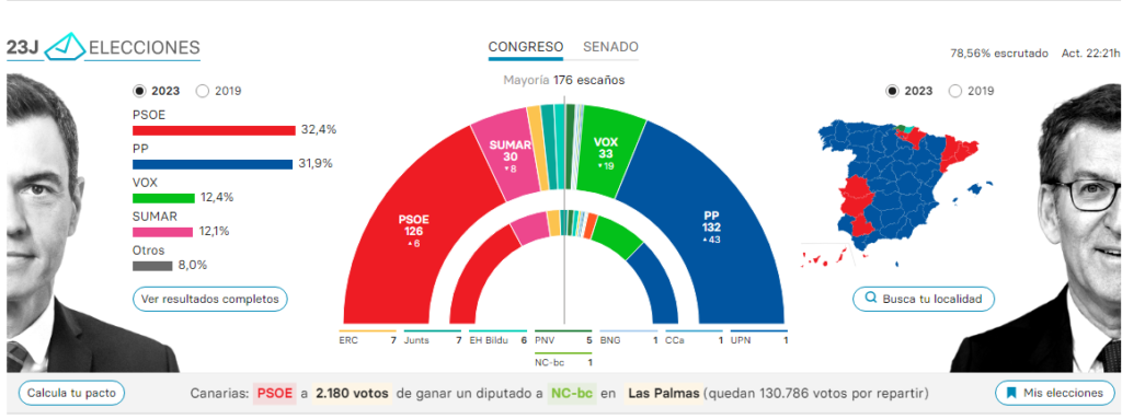 Radikalni ljevičari iz koalcije Sumar, koji je podržavao socijaliste, imao je 30 mjesta u ranim rezultatima.Ipak ljevica ima veli koalicioni kapacitet s obzirom da su desničari iz VOX-a tražili zabranu regionalnih stranaka koje optužuju za separatizam.