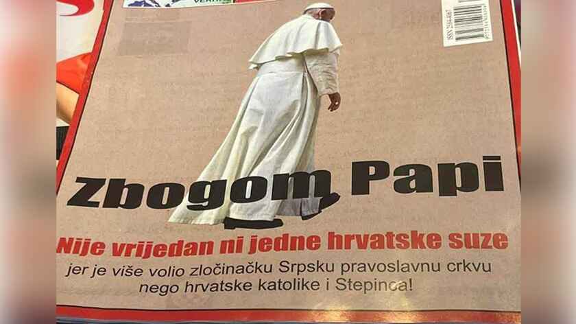 Na naslovnici Hrvatskog tjednika osvanula je velika fotografija pape Franje u bijeloj odjeći, prikazanog s leđa, uz krupni naslov: “Zbogom Papi”, dok su ispod krupnog naslova naveli kako “nije vrijedan ni jedne hrvatske suze”.