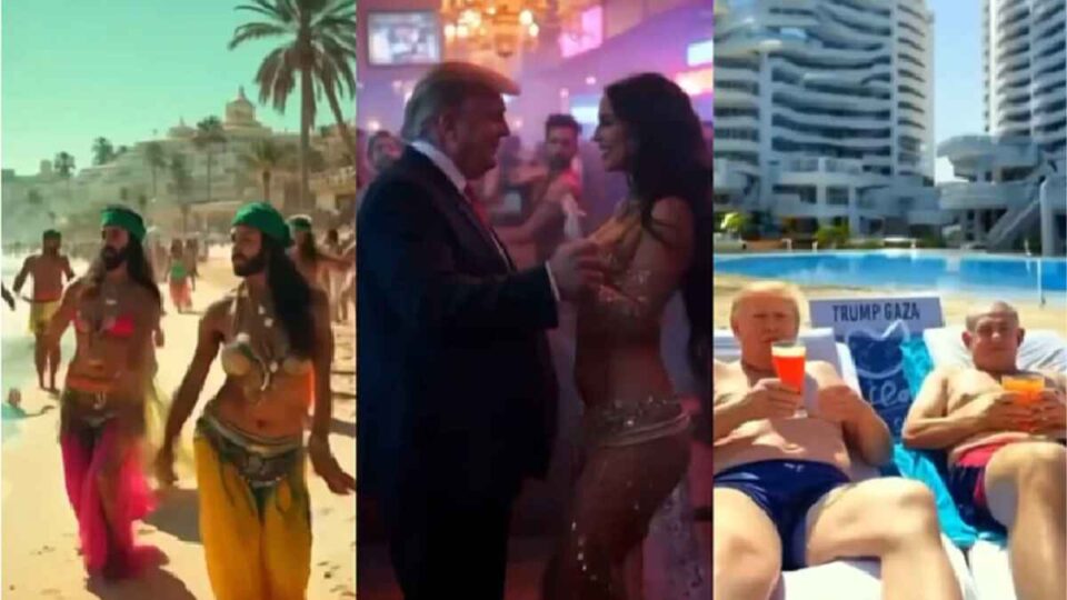 Trump se u videu pojavljuje plešući sa oskudno odjevenom ženom, dok se na kraju opušta uz izraelskog premijera Benjamina Netanyahua pored bazena hotela s natpisom “Trump Gaza”.