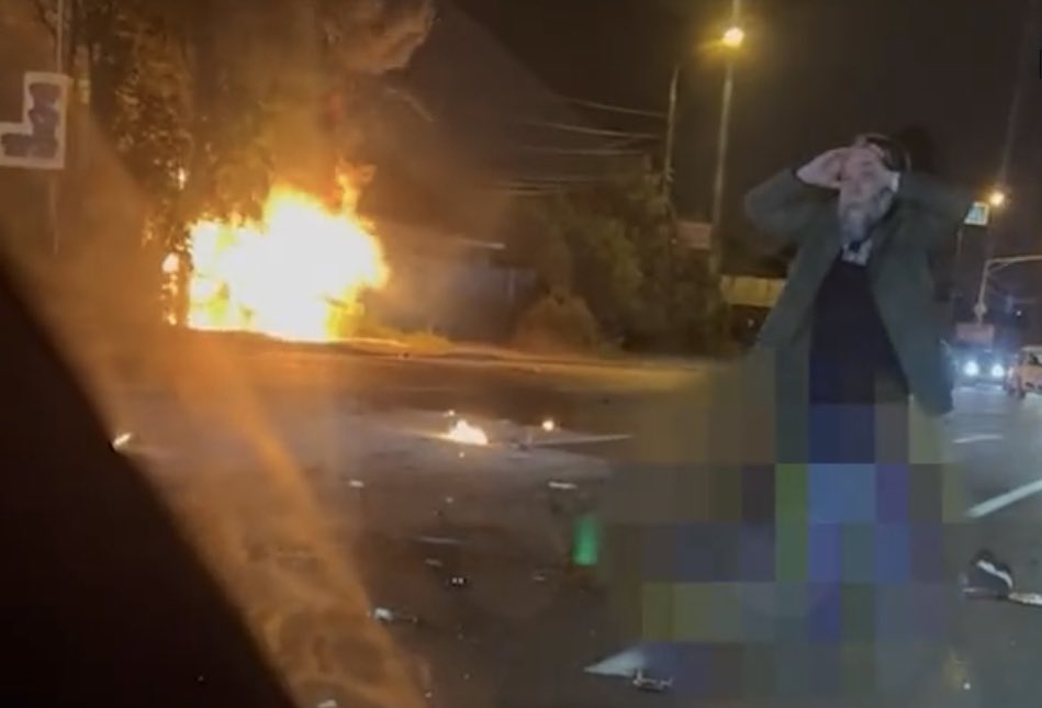 Objavljene fotografije na društvenim mrežama pokazuju Dugina na licu mjesta kako se drži z glavu dok gleda automobil u plamenu.