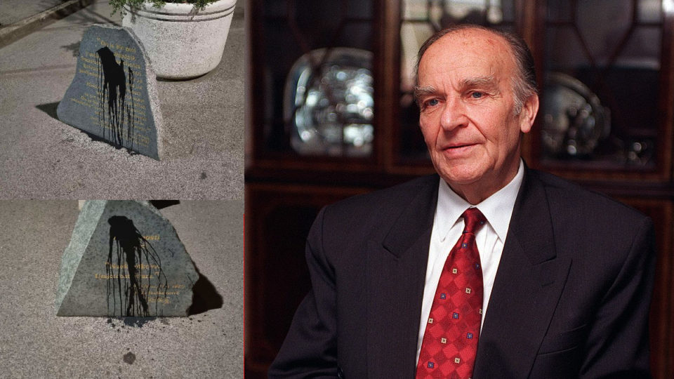Nepoznati počinioci su posuli crnom farbom ploče na kojima se nalaze citati prvog predsjednika Republike Bosne i Hercegovine, Alije Izetbegovića.