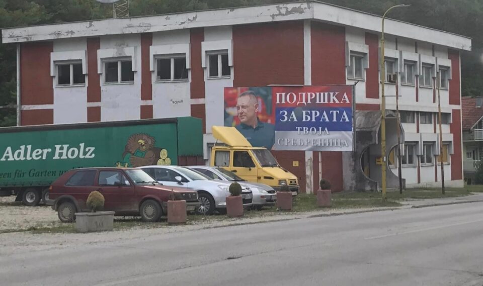 “Podrška za brata, tvoja Srebrenica”, piše na bilbordu na ulazu u tu općinu u istočnoj Bosni, uz fotografiju Vulina s trobojkom.