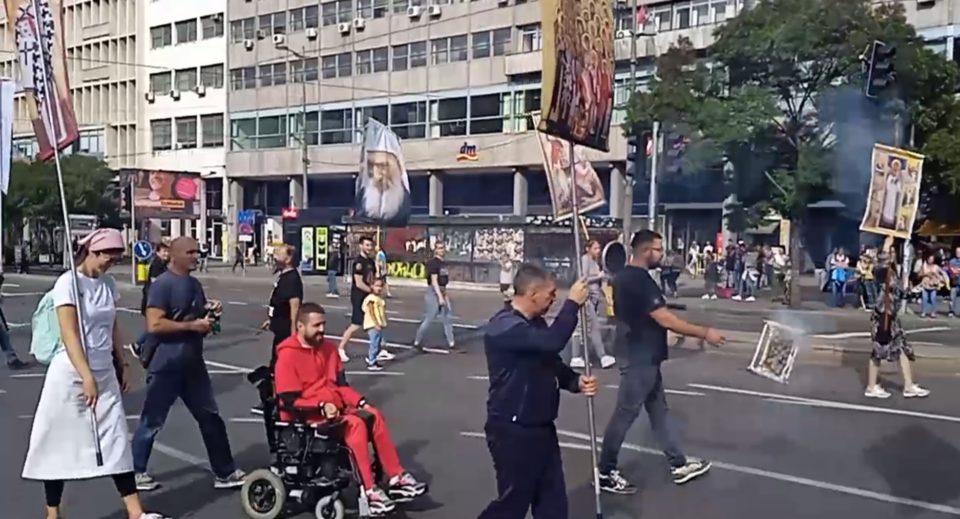 Učesnici skupa koji organizatori zovu “Litija za spas Srbije” krenuli su od zgrade Srpske patrijaršije u Beogradu ka crkvi Svetog Marka da bi, kako su najavili na društvenim mrežama, “okadili” mesto gde je 17. septembra odrzana šetnja Evroprajd.