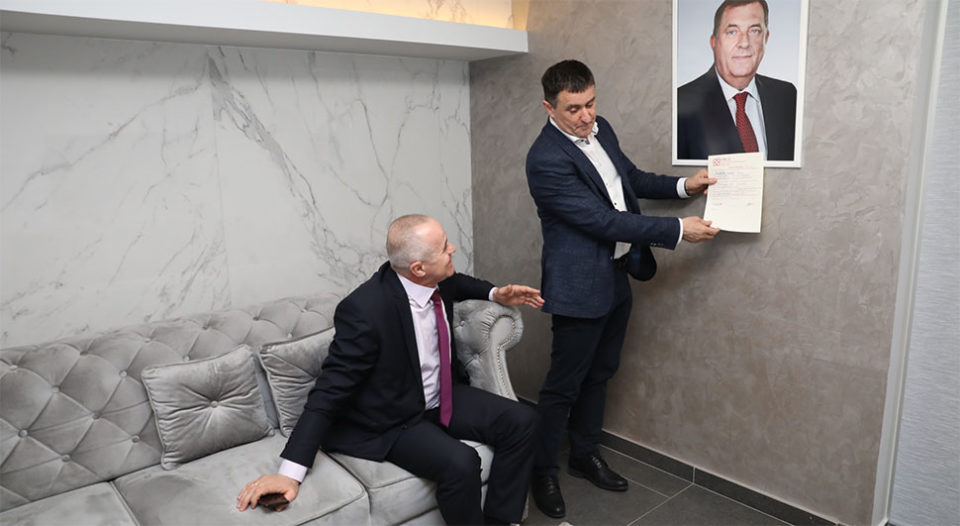 On se sa predsjednikom SNSD-a Banja Luka Vladom Đajićem slikao ispod slike Milorada Dodika.