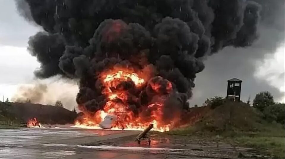 Fotografije objavljene na društvenim mrežama koje je analizirao BBC Verify pokazuju kako Tupoljev Tu-22 gori u zračnoj bazi Soltsy-2, južno od St Petersburga.
