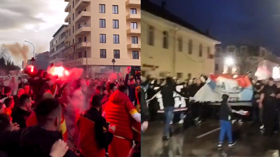 Navijači Srbije takjođe su na ulicama Podgorice. Na jednom od snimaka pjevaju “Spremte se spremte Četnici”.