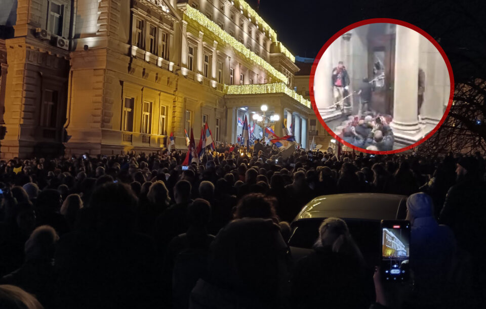Opozicioni predstavnici sa liste “Srbija protiv nasilja” pokušavaju da uđu u Skupštinu Beograda, na sedmom protestu sa kojeg se traži poništavanje izbora.