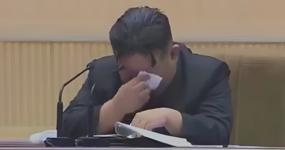 Na snimci koja se munjevito proširila društvenim mrežama može se vidjeti Kim Jong-un kako spušta pogled i briše suze s lica.