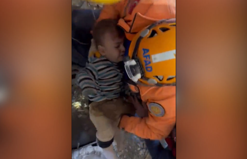 Radnik turske Uprave za katastrofe i hitne slučajeve (AFAD) odnio je dječaka i predao ga zdravstvenim radnicima, dok su slučajni prolaznici snimali spašavanje svojim telefonima.
