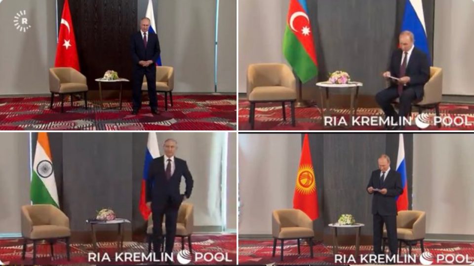 Rusya Devlet Başkanı Putin, Semerkant'taki ikili görüşme öncesi Cumhurbaşkanı Erdoğan'ı yaklaşık bir dakika boyunca ayakta bekledi. pic.twitter.com/skOx5O8T02