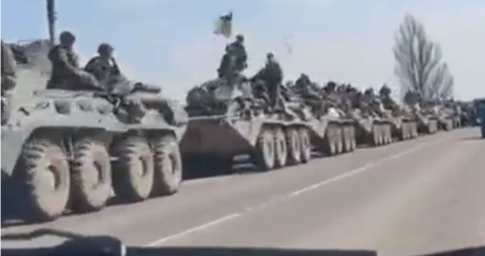 Vojna vozila na video kreću se prema sjeverozapadu, u smjeru ukrajinske regije Donbas.