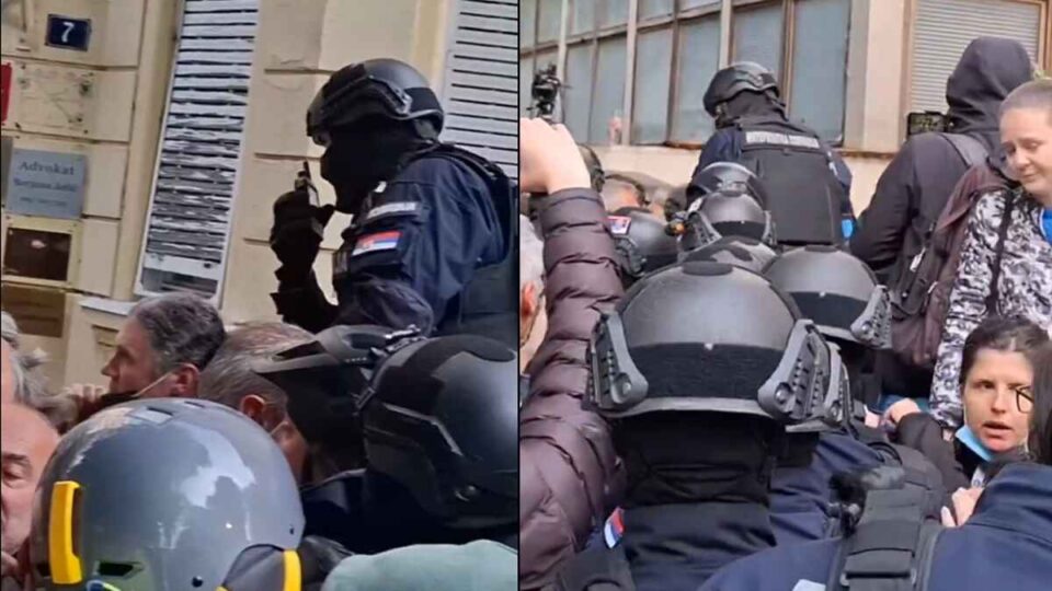 Pokušaj razbijanja blokade nije uspeo! Policija je tukla, prskala biber sprejom, kako bi zaposleni ušli, a zaposleni čak i da su ušli sva ročišta su otkazana. pic.twitter.com/O5BglBTYng