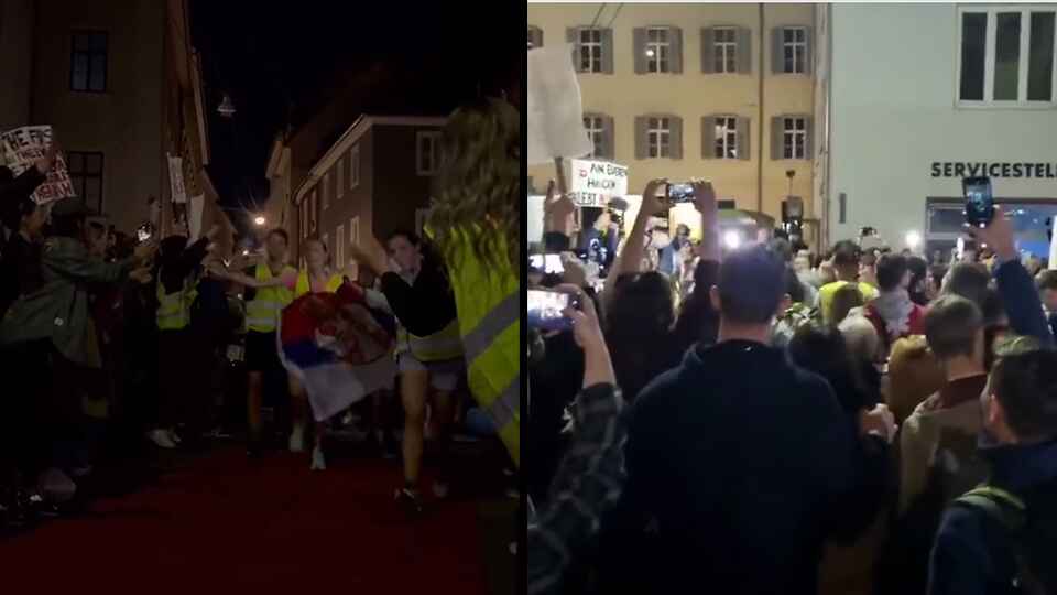 Na početku programa na srpskom i nemačkom ispričano je šta se desilo u Novom Sadu. Na objašnjenje da nasilan napad na studente nije uspeo, okupljeni su glasno povikali i aplaudirali za hrabrost studenata.